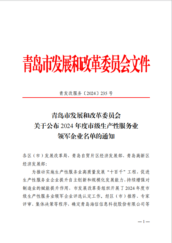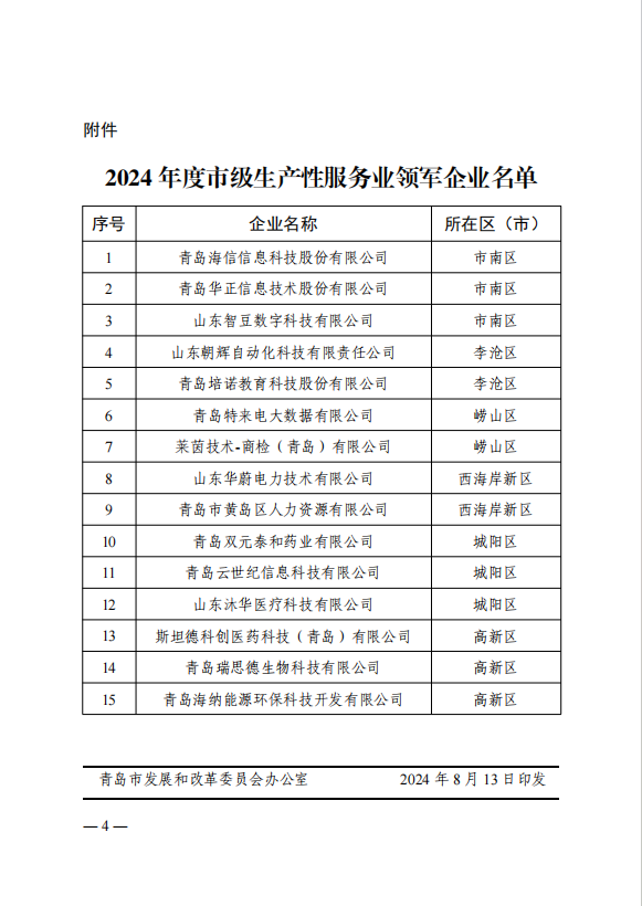 近日,青岛市发展和改革委员会发布信息,公布了市生产性服务业领军企业名单(共15家企业),华蔚电力公司榜上有名!