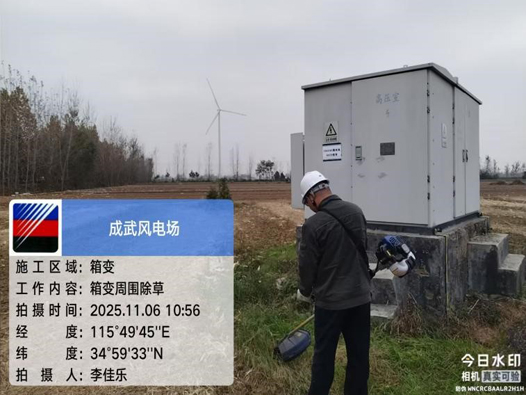 为消除风机、箱变周边安全隐患,保障电力设备稳定高效运行,近日,菏泽成武风电运维项目部组织开展了风机及箱变周边专项除草行动,以“地毯式清理、无死角整治”筑牢安全生产防线,为风电场持续稳定发电保驾护航。