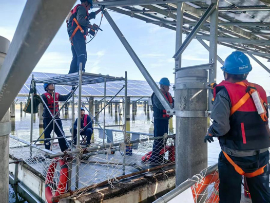 近期,公司承接的天津水上光伏定检项目,历时近三个月,克服各种困难后已经正式进入收尾阶段。