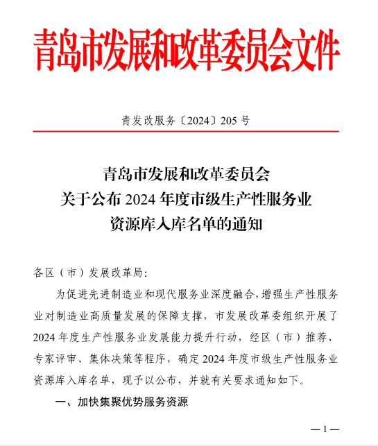 为促进先进制造业和现代服务业深度融合,构建生产性服务业高质量发展的梯度支撑体系,青岛市发改委组织开展了2024年生产性服务业发展能力提升行动。