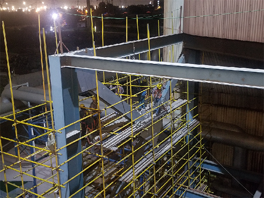 现场需拆装4000余吨钢结构,由于作业空间受限,大型吊车无法提供有效作业,公司项目部经过精密组织筹划协调,赶在节点之前顺利完成该项目的全部技改工作。