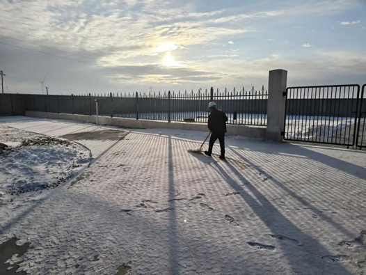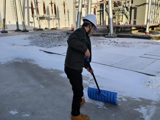 北塔山汇集站迅速启动雨雪冰冻灾害应急预案,组织全体员工分组行动,携带扫帚、铁锹、除冰铲等工具,对升压站设备区、输电线路通道、厂房屋顶及巡检道路开展地毯式清雪除冰作业。作业中,工作人员严格遵守安全规程,落实防坠落、防触电措施,重点清理设备端子箱、刀闸触点等关键部位积雪积冰,防止覆冰闪络故障。